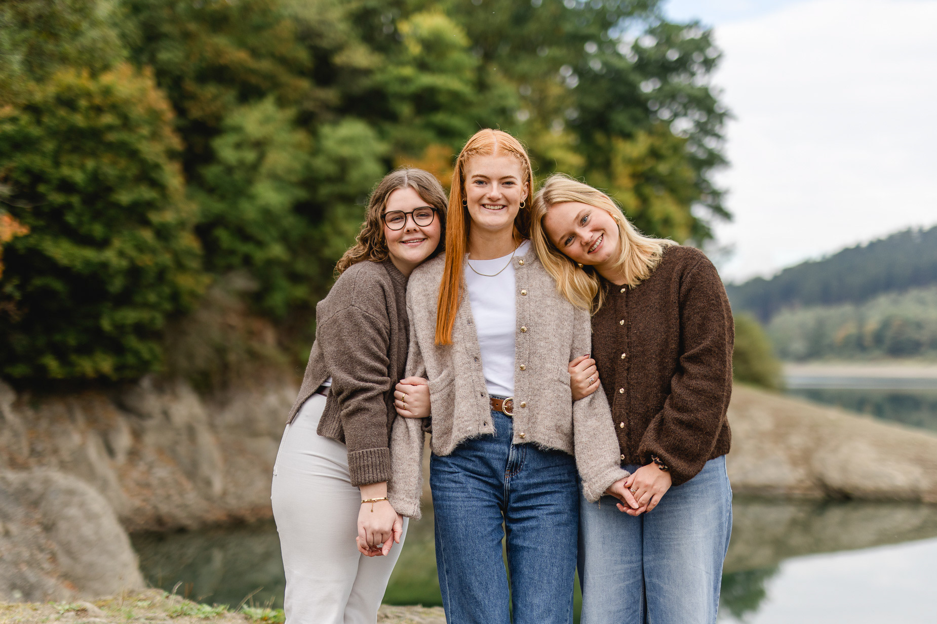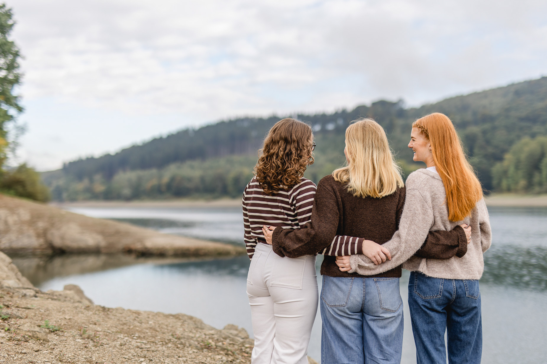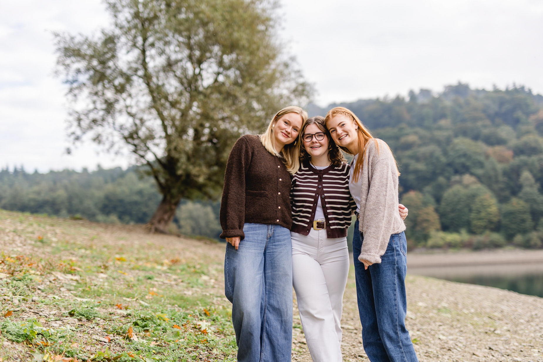 Gemeinsame Zeit, Sonne im Gesicht und ganz viel Lachen – dieses Freundinnen-Shooting am Hennesee bei Meschede war einfach schön. Ich liebe diese Location, weil sie so vielseitig ist – perfekt für natürliche Portraits, kleine Gruppen oder auch größere Freundinnenrunden. Nach dem Shooting bietet sich ein Abstecher ins H1 Café direkt am See an – für Kaffee, Kuchen und einen richtig schönen Ausklang. Die drei Mädels haben sich das Shooting geteilt – so hatte jede tolle Einzelportraits und gleichzeitig viele gemeinsame Bilder. Das ist übrigens eine super Geschenkidee: ein Gutschein für ein gemeinsames Fotoshooting mit den besten Freundinnen oder Schwestern. Ihr teilt euch einfach das Shooting, habt einen wunderbaren Nachmittag zusammen – und bekommt alle bearbeiteten Bilder eurer Serie inklusive. So entstehen Erinnerungen, die bleiben – ganz ungezwungen, fröhlich und authentisch. Ich fotografiere im ganzen Sauerland – rund um Meschede, Arnsberg, Schmallenberg, Eslohe und Sundern – natürliche Portraits und Gruppenfotos für Freundinnen, Familien und Paare.