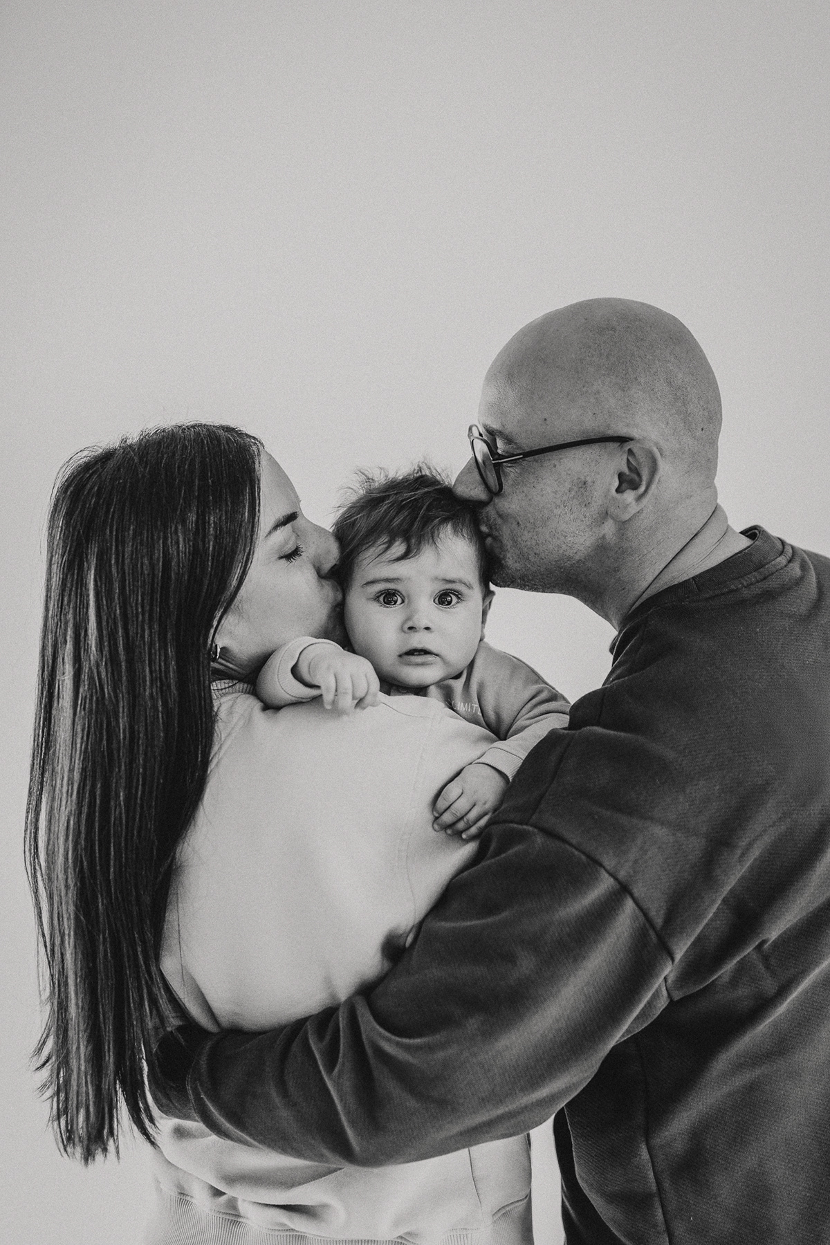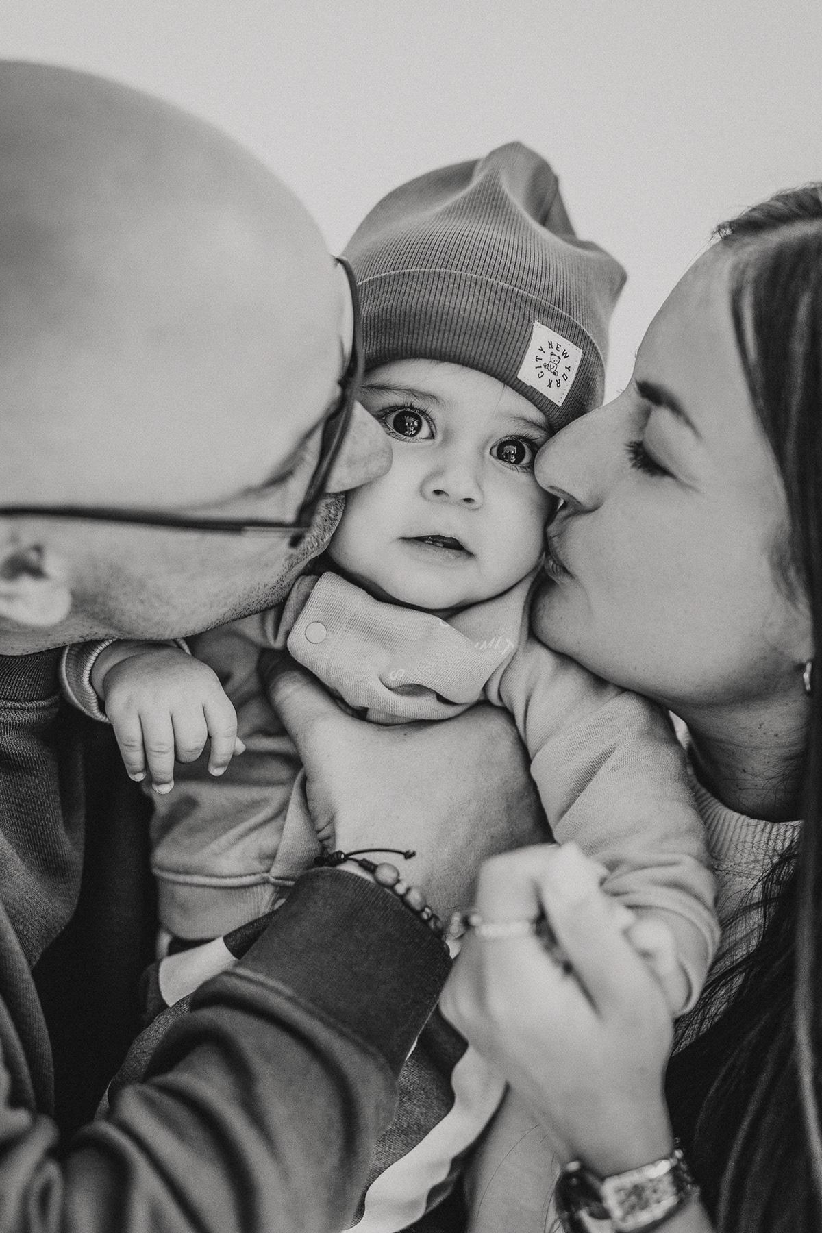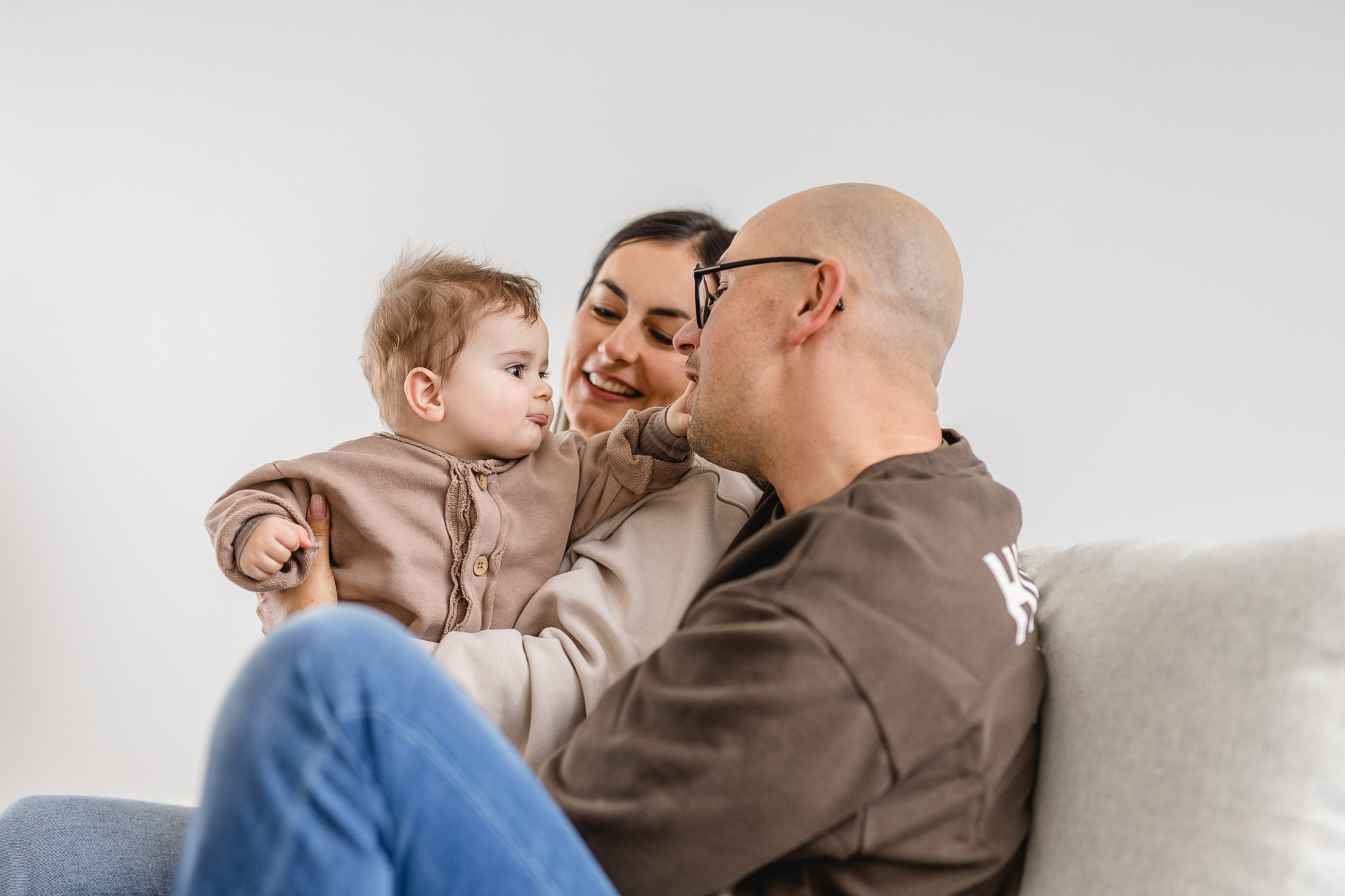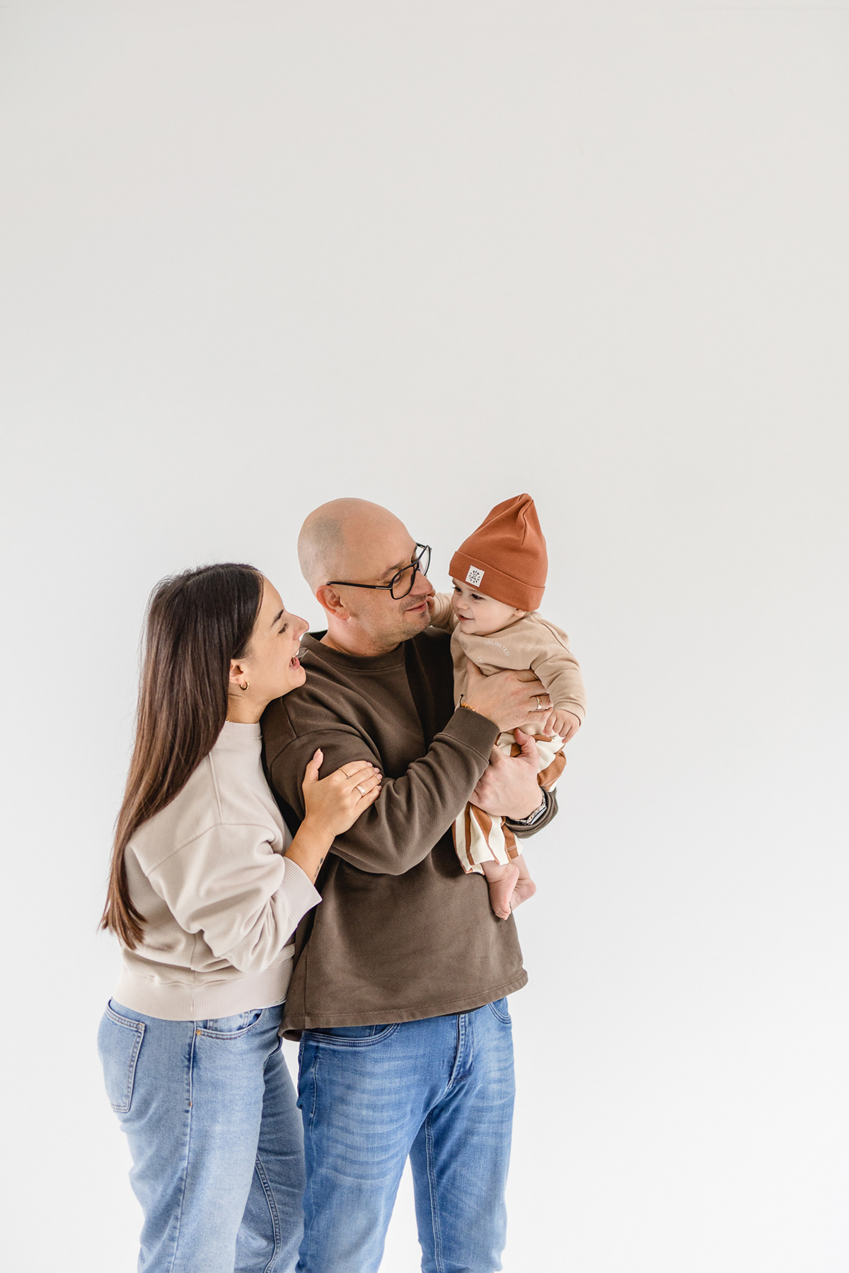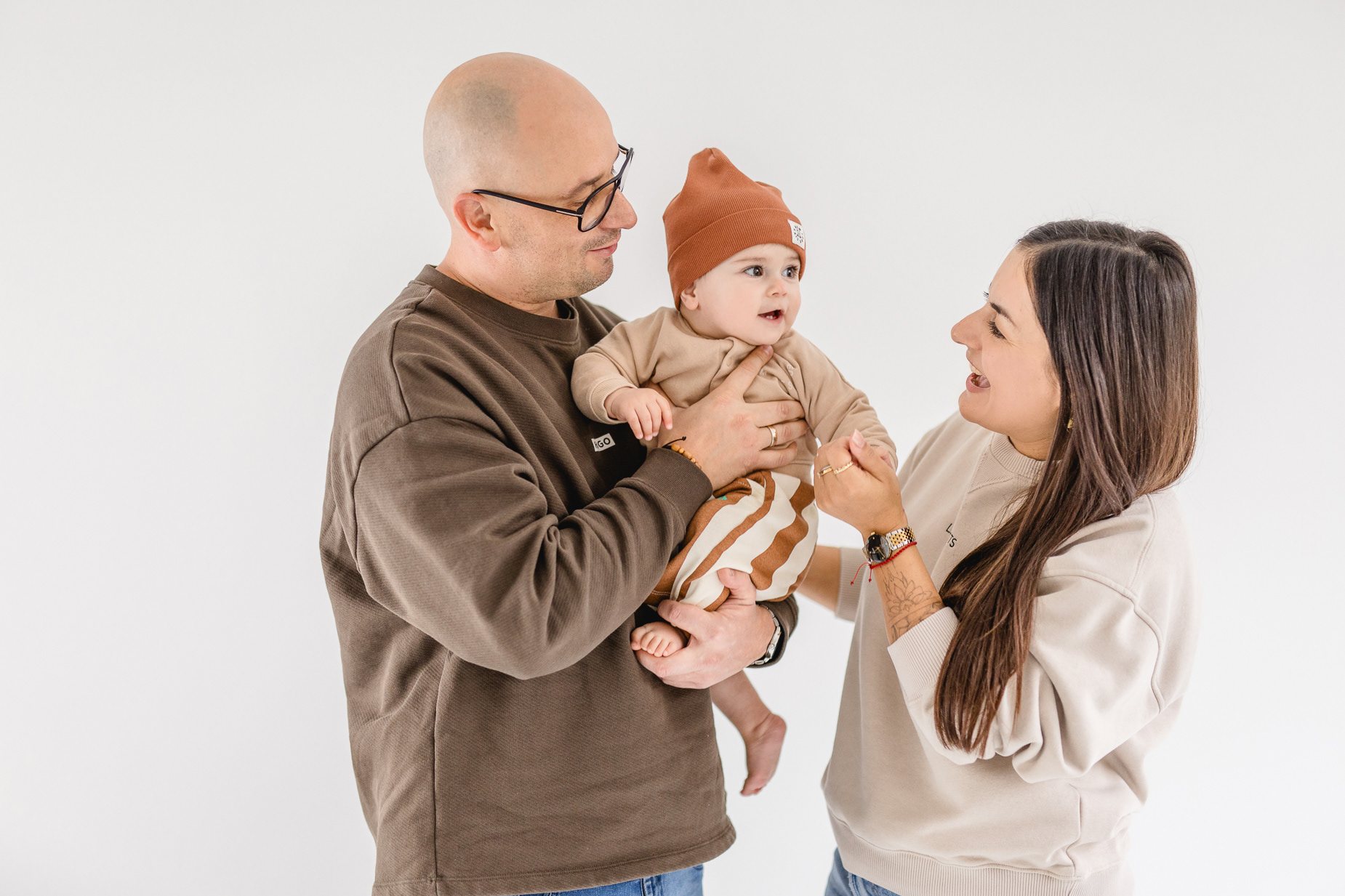 Studiofotografie hat einen ganz besonderen Zauber – klar, schlicht, zeitlos und frei von Ablenkungen. In meinem Tageslicht-Studio in Schmallenberg entstehen genau solche Bilder: reduziert, hell und pur. Der weiße Hintergrund und das natürliche Licht lenken den Fokus ganz bewusst auf das Wesentliche – eure Gesichter, eure Verbindung und eure Emotionen. Gerade für kleine Familien, Babys und Kleinkinder ist unser Studio perfekt geeignet: Es ist warm, wetterunabhängig und bietet eine ruhige Atmosphäre, in der sich Kinder wohlfühlen und frei entfalten können. Die süße Familie, die du in den Beispielbildern siehst, hat mich im Studio besucht, und wir haben gemeinsam wundervolle Erinnerungen geschaffen. Der kleine Junge ist sechs Monate alt – ein wunderschönes Alter für Fotos, weil Babys dann meist schon fröhlich lächeln, sich drehen, greifen und ihre Persönlichkeit zeigen. Zeitlose Studiobilder werden zu wertvollen Erinnerungen, die ein Leben lang bleiben und immer wieder Freude bereiten. Wenn ihr euch schlichte, echte und helle Familienfotos wünscht, freue ich mich sehr darauf, euch in meinem Tageslicht-Studio in Schmallenberg zu begrüßen.