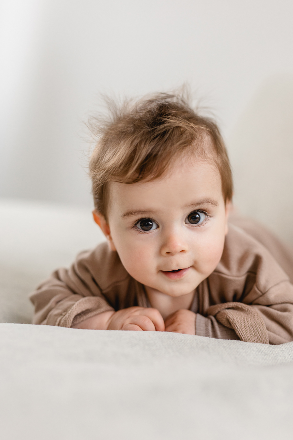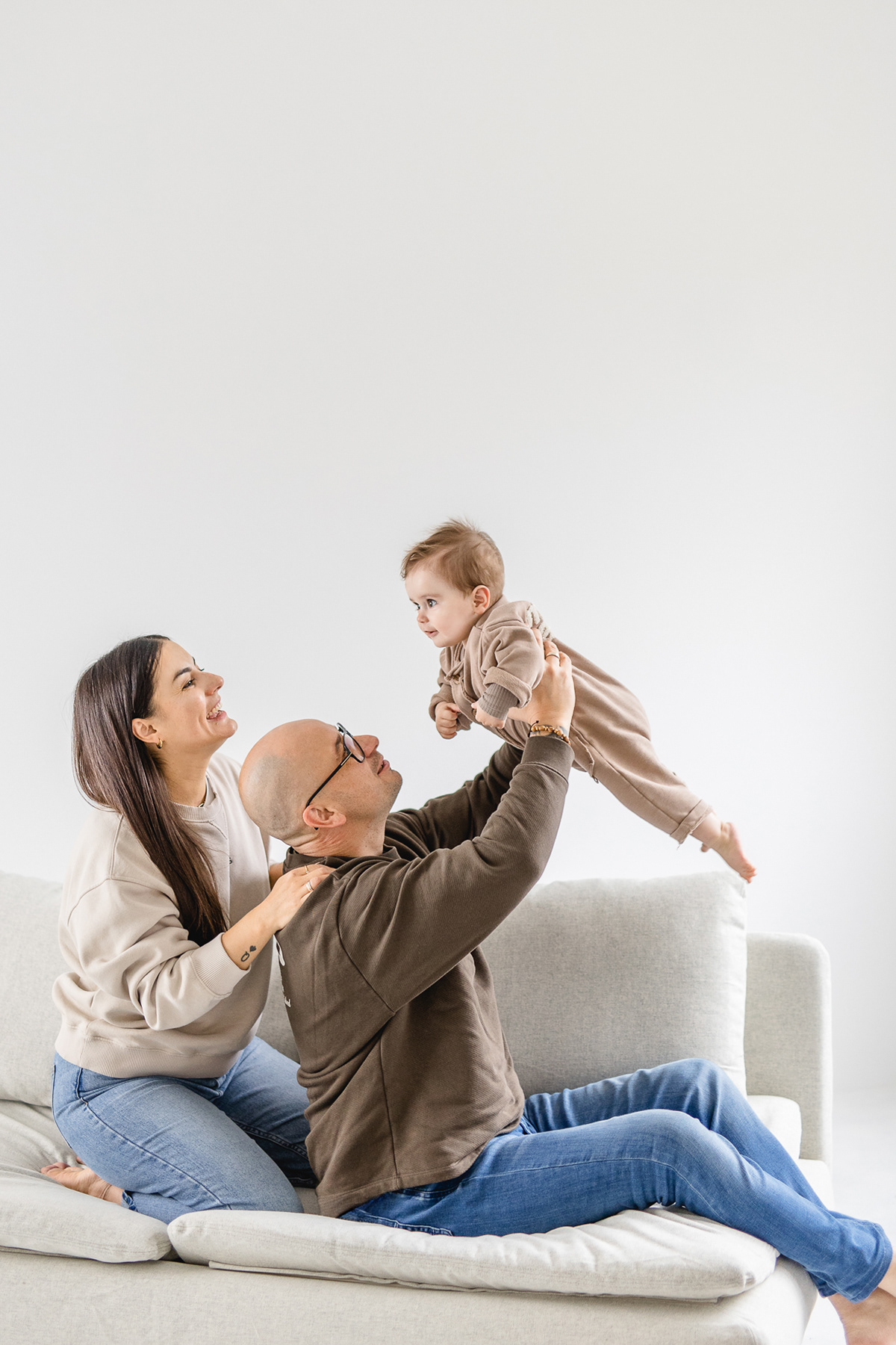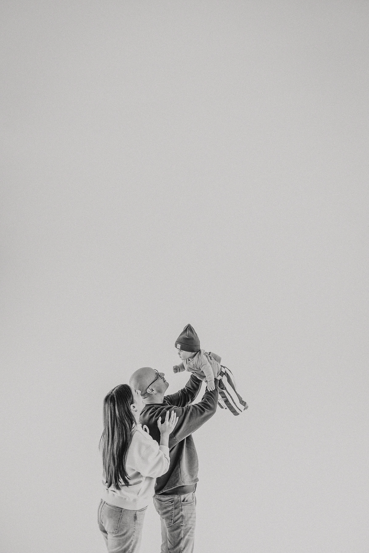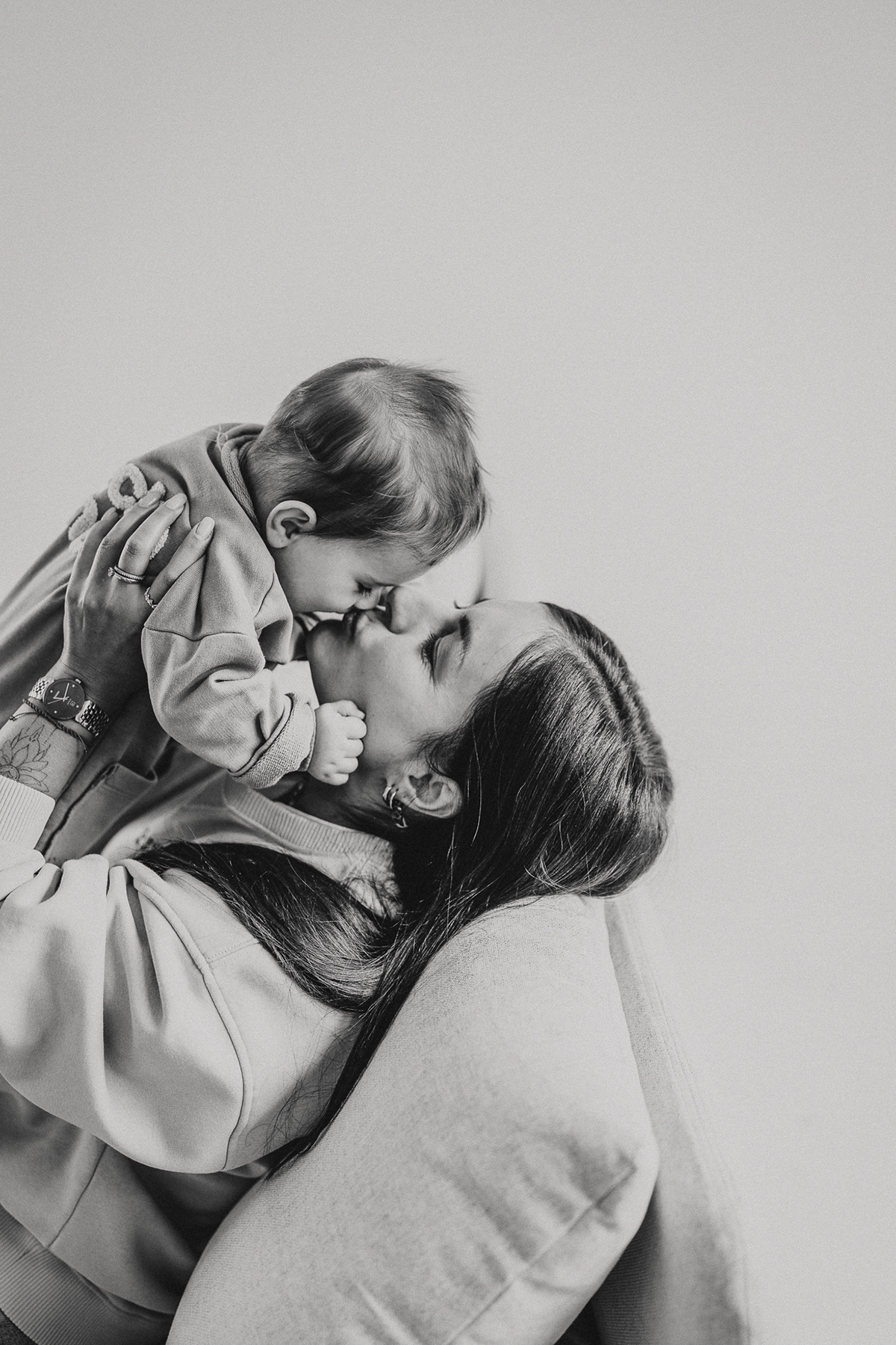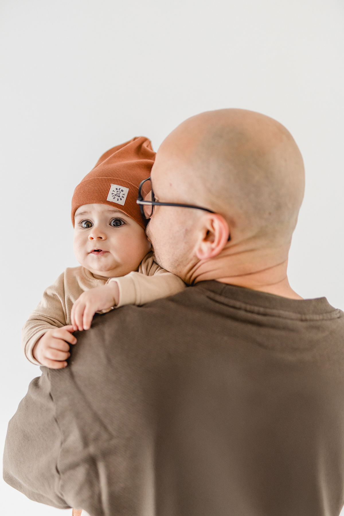 Studiofotografie hat einen ganz besonderen Zauber – klar, schlicht, zeitlos und frei von Ablenkungen. In meinem Tageslicht-Studio in Schmallenberg entstehen genau solche Bilder: reduziert, hell und pur. Der weiße Hintergrund und das natürliche Licht lenken den Fokus ganz bewusst auf das Wesentliche – eure Gesichter, eure Verbindung und eure Emotionen. Gerade für kleine Familien, Babys und Kleinkinder ist unser Studio perfekt geeignet: Es ist warm, wetterunabhängig und bietet eine ruhige Atmosphäre, in der sich Kinder wohlfühlen und frei entfalten können. Die süße Familie, die du in den Beispielbildern siehst, hat mich im Studio besucht, und wir haben gemeinsam wundervolle Erinnerungen geschaffen. Der kleine Junge ist sechs Monate alt – ein wunderschönes Alter für Fotos, weil Babys dann meist schon fröhlich lächeln, sich drehen, greifen und ihre Persönlichkeit zeigen. Zeitlose Studiobilder werden zu wertvollen Erinnerungen, die ein Leben lang bleiben und immer wieder Freude bereiten. Wenn ihr euch schlichte, echte und helle Familienfotos wünscht, freue ich mich sehr darauf, euch in meinem Tageslicht-Studio in Schmallenberg zu begrüßen.